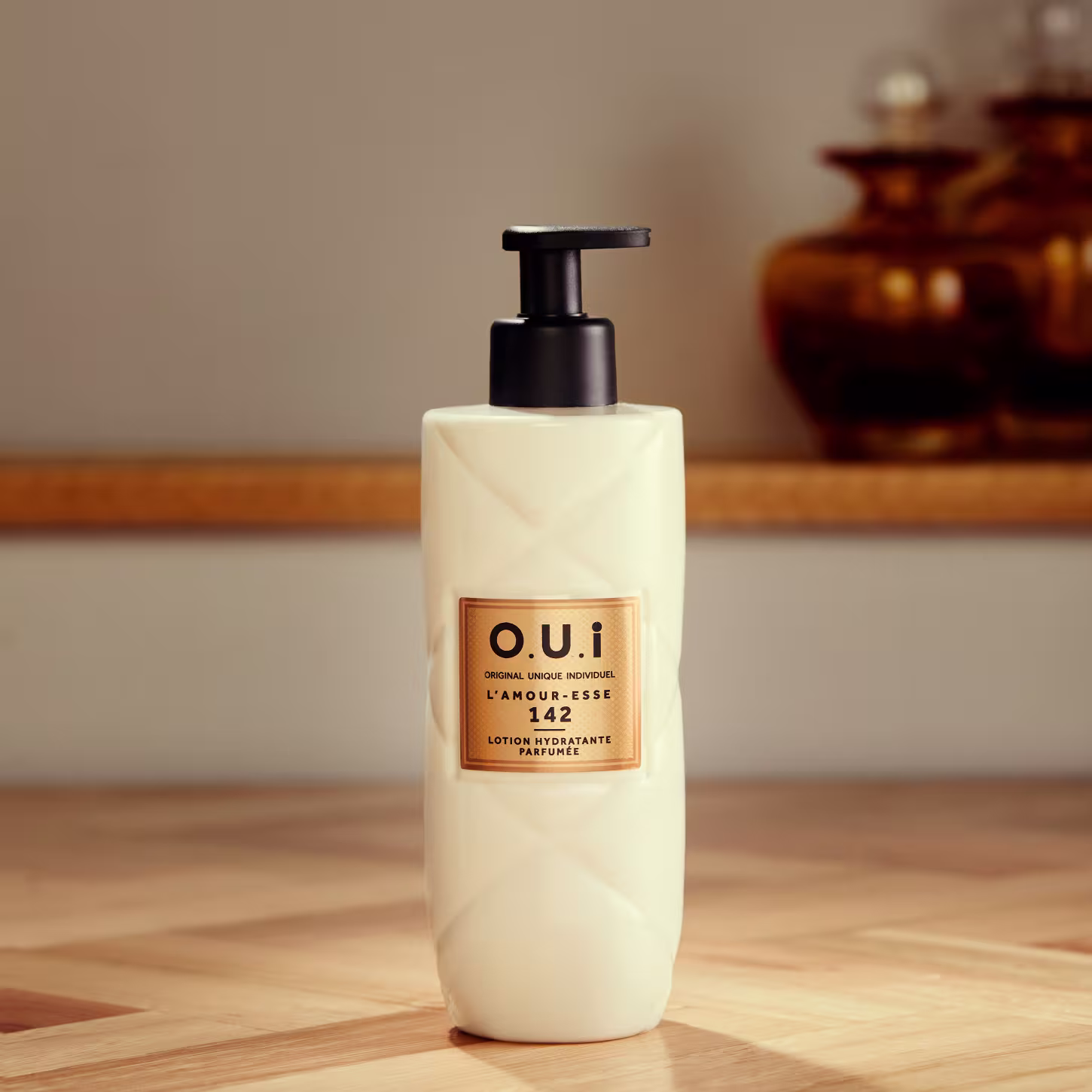 Loção hidratante desodorante corporal para todos os tipos de pele. O.U.i L’Amour-Esse 142 hidrata, enquanto perfuma o corpo com uma fragrância envolvente e elegante. Acrescente uma camada especial a sua rotina de cuidados, diga O.U.i para si mesma!