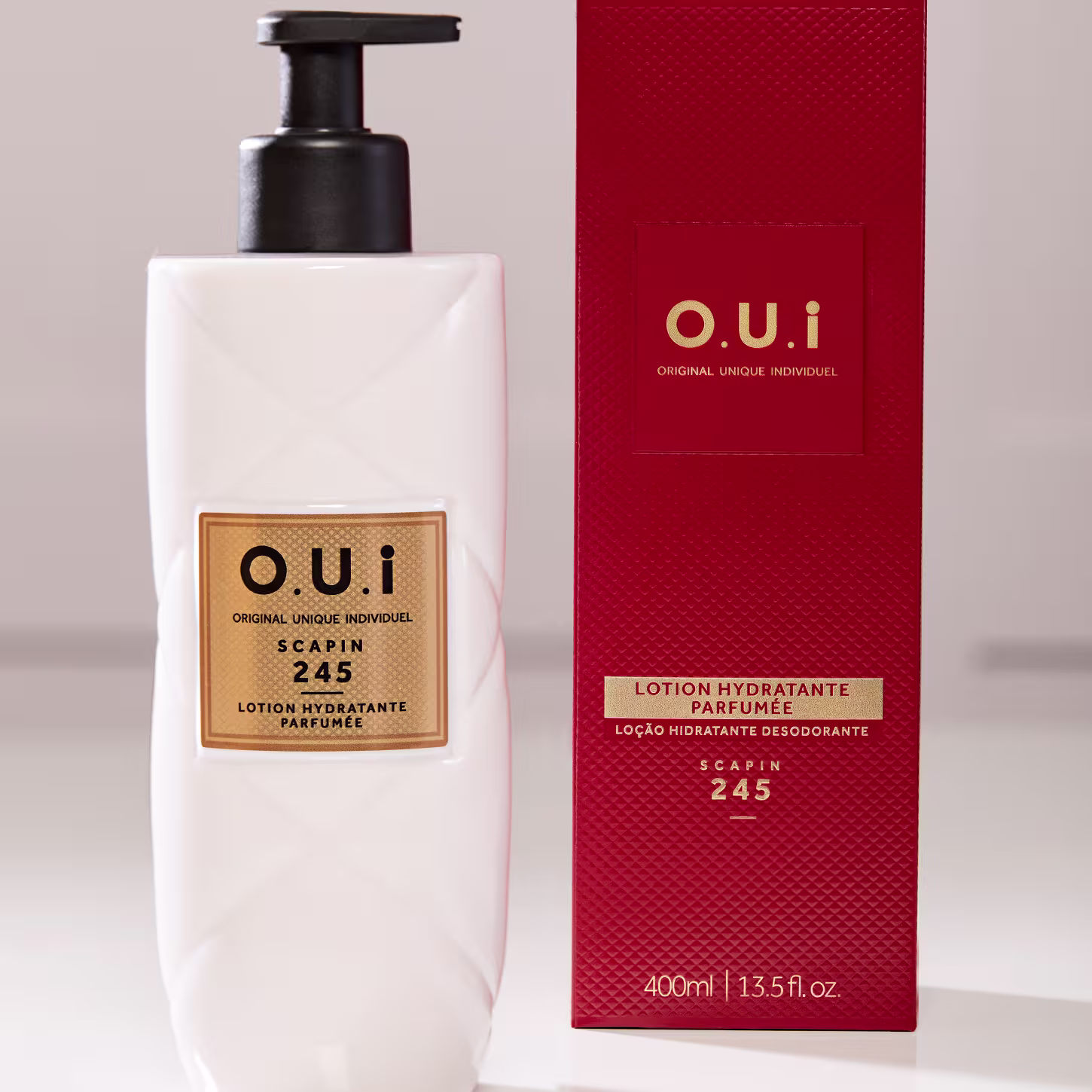 Loção Hidratante Desodorante Corporal para todos os tipos de pele. O.U.i Scapin 245 garante hidratação duradoura ao corpo. Complete a sua rotina de cuidados diários com a loção mais leve do nosso ritual de hidratação.