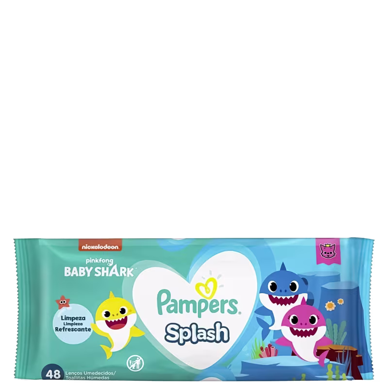 Lenços umedecidos. Pampers Baby Shark Splash garante um limpeza incrível, sendo super prático para a rotina de cuidados com os bebês.