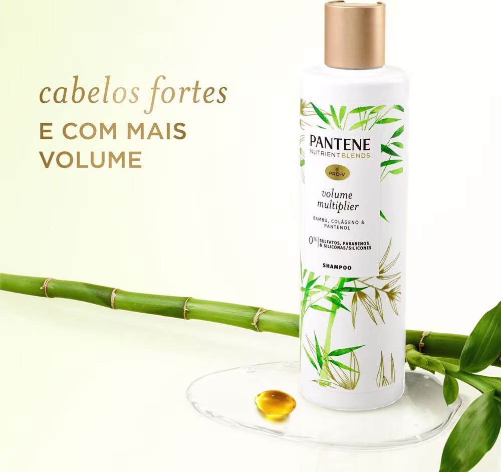O Shampoo Pantene Nutrient Blends Volume Multiplier traz bambu e colágeno em seu Complexo Pro-V, que penetra profundamente nos fios para obter força e volume, para cabelos grossos e abundantes. Além disso, sua fórmula sem sulfatos, sem parabenos e sem silicones é segura para cabelos coloridos, pois remove delicadamente as impurezas sem agredir os fios.