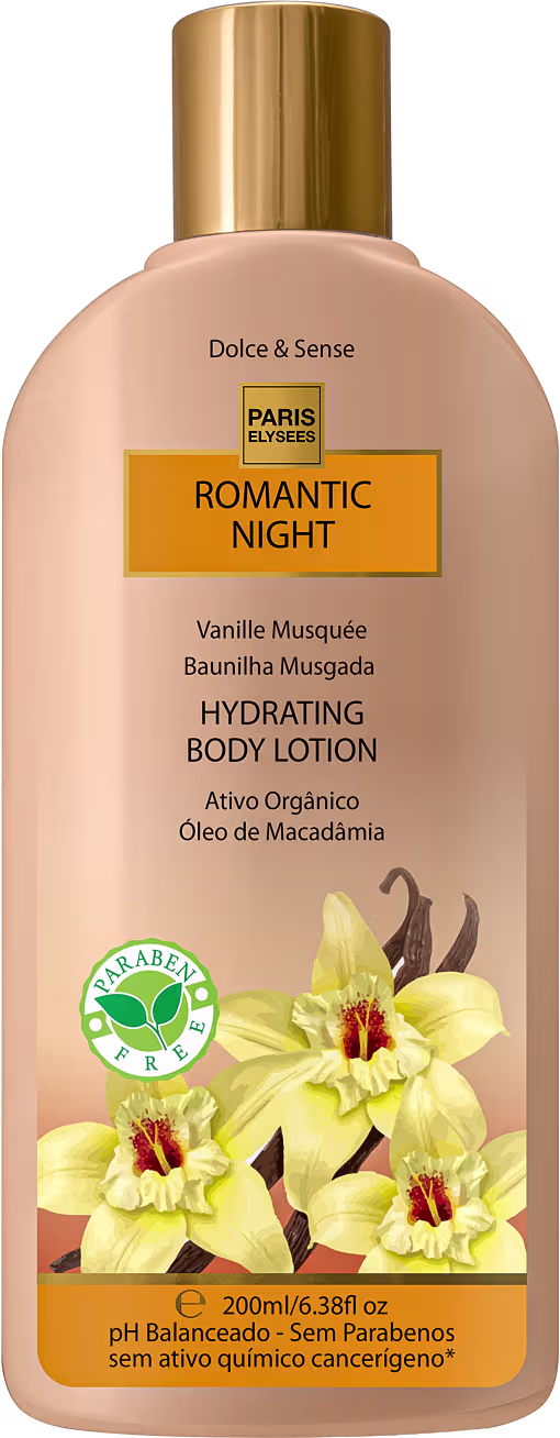 Loção Hidratante Paris Elysees Dolce & Sense Romantic Night Corporal, com textura leve e não oleosa. Melhores Hidratantes Corporais Paris Elysees na BLZ Ver mais ❯