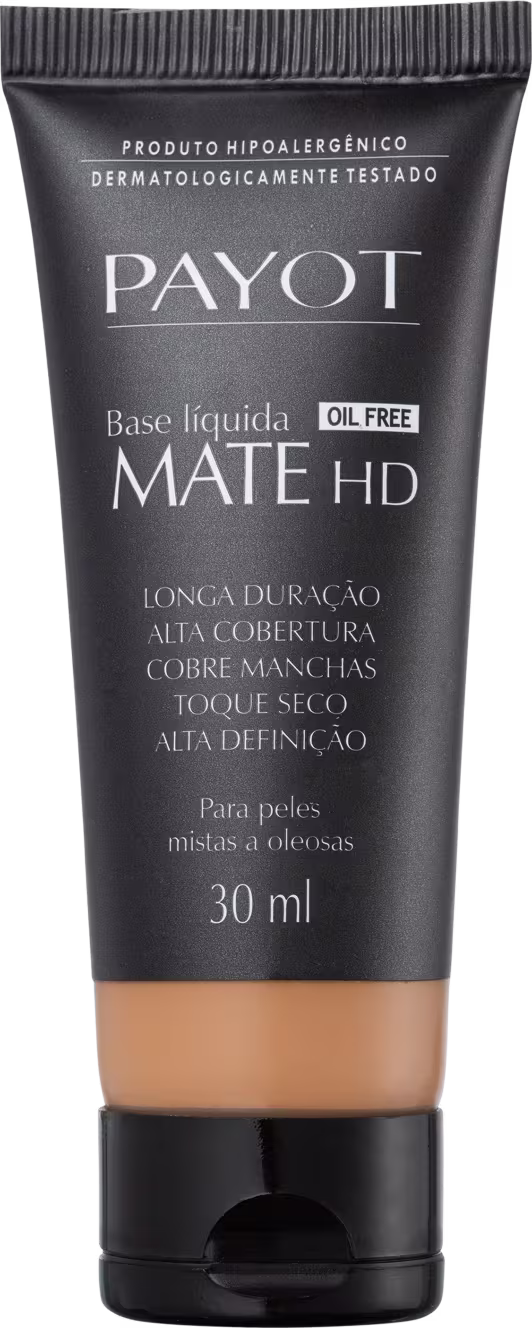 A Base Líquida Mate HD, da Payot, possui fórmula que fixa bem na pele e oferece longa duração. Além disso, é desenvolvida com alta definição, de forma a não mostrar as imperfeições nem com as câmeras HD.
