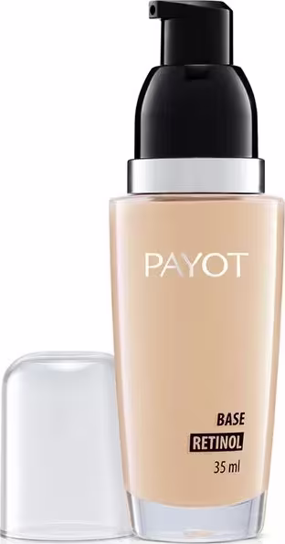 Base líquida de média cobertura para todos os tipos de pele. Payot Retinol trata o rosto, enquanto a deixa uniformizado.
