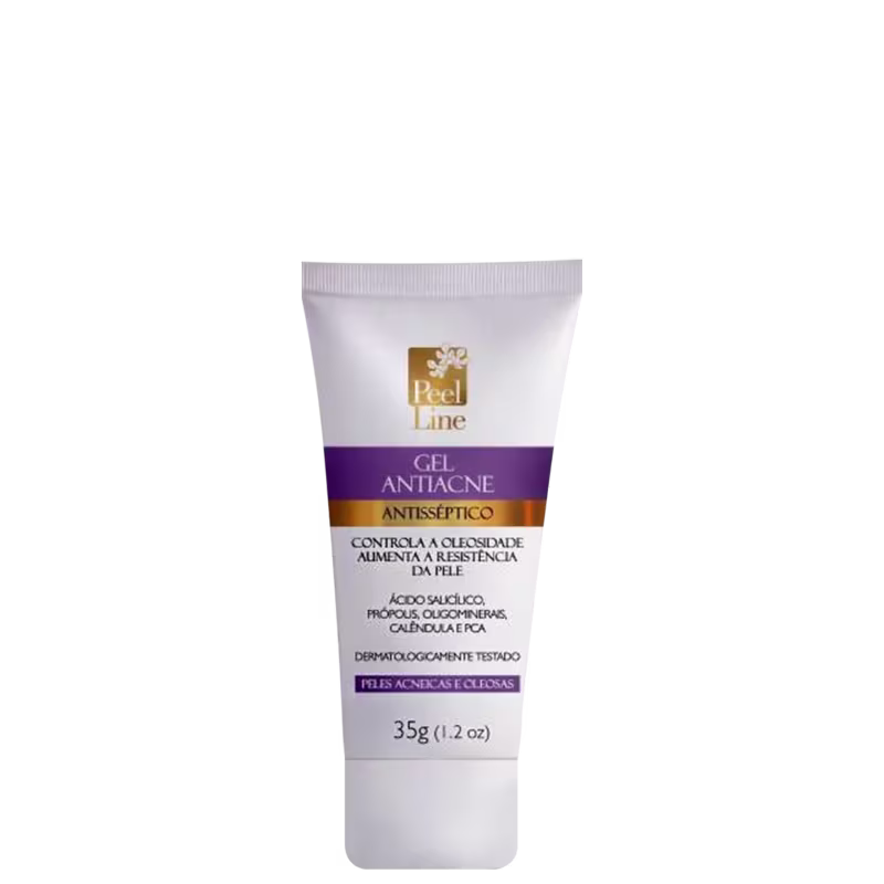 Gel secativo para peles acneicas. Peel Line Antisséptico reduz a vermelhidão e melhora a aparência das espinhas, com ação cicatrizante, bactericida, anti-inflamatória e regeneradora.