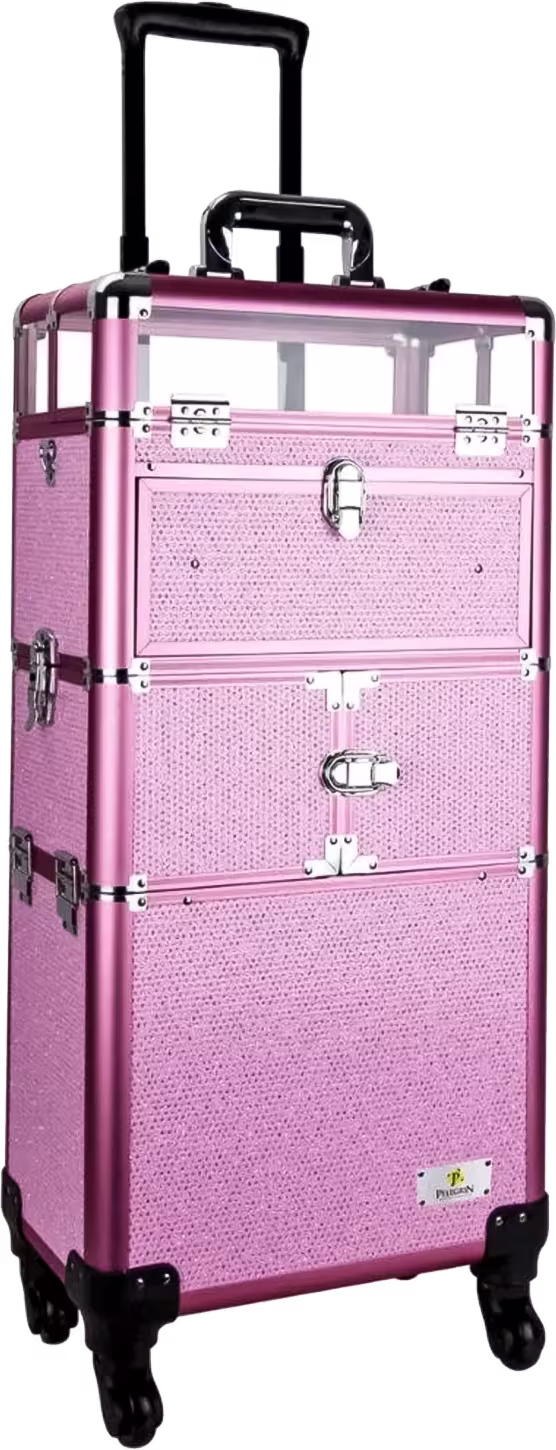 Maleta de maquiagem em alumínio. Pelegrin 3 em 1 PEL-M1022 Rosa Cristal é a solução ideal para organizar seus itens de maquiagem e outros acessórios, de maneira prática e super organizada.