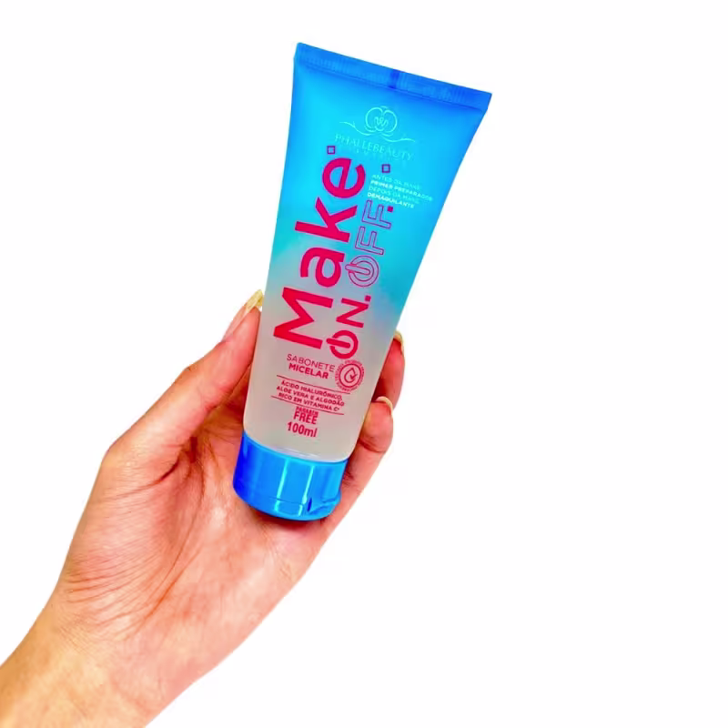Sabonete líquido para o rosto. Phállebeauty Make On Off ajuda a remover os resíduos e impurezas da pele antes e depois da make.