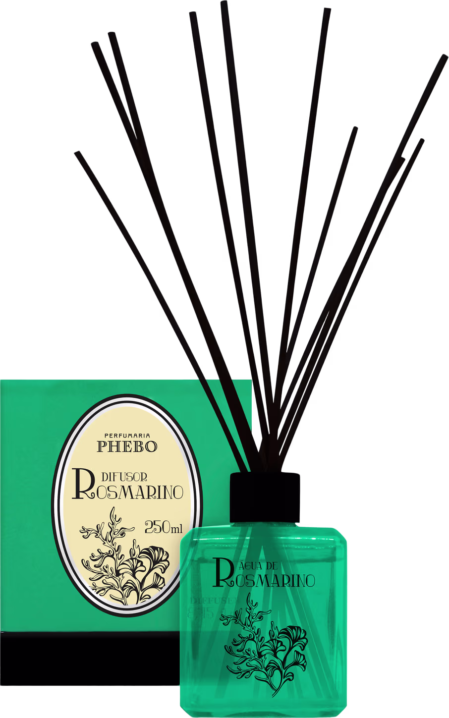 O Difusor Phebo Rosmarino tem como essência o orvalho do mar para criar um aroma fresco e sofisticado. Sua embalagem em vidro possui uma ilustração que combina o alecrim aos elementos marinhos para remeter às notas da fragrância.