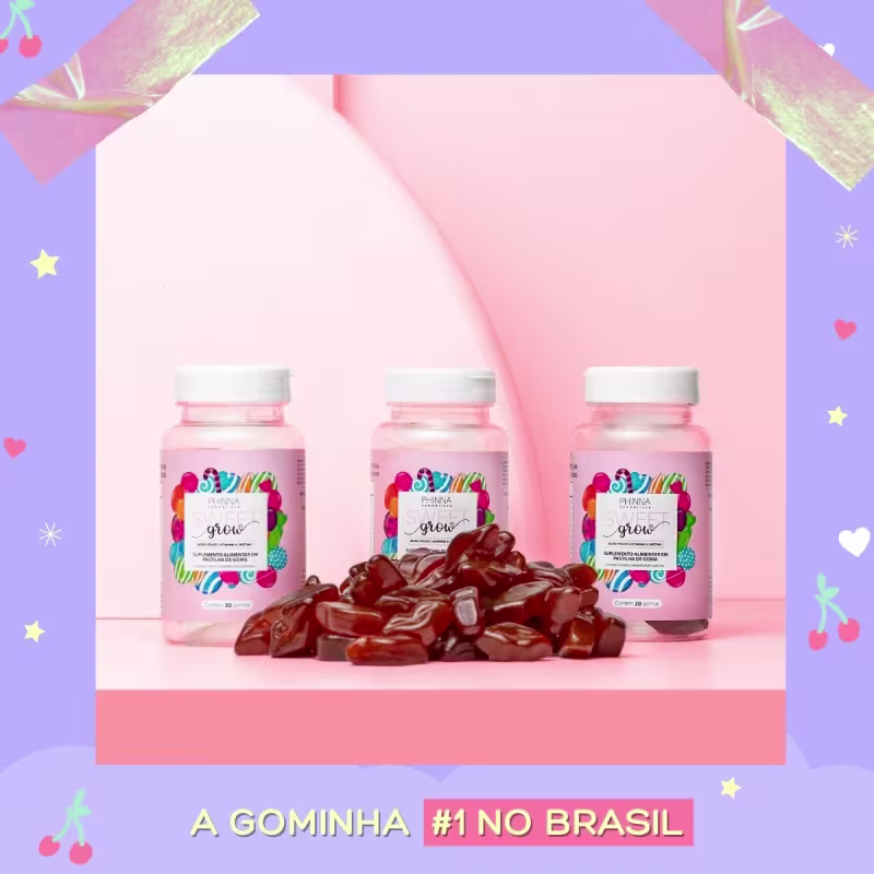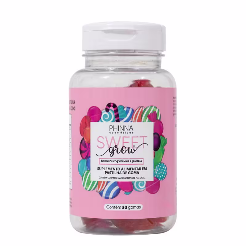 O Suplemento Alimentar Phinna Sweet Grow ajuda a acelerar o crescimento capilar, além de promover a saúde e a beleza da pele e das unhas. Sua fórmula conta com 15 vitaminas importantes para o corpo e é composta somente por ingredientes naturais.