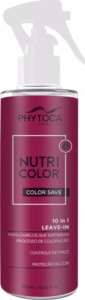 O Leave-in Phytoca Nutricolor Color Save 10x1 possui formulação enriquecida com Tocoferol, um poderoso atico com ação antioxidante que preserva a sua cor impedindo seu desgaste. Além disso, seu uso proporciona dez benefícios para melhorar a saúde dos fios. Com ele seus fios ganham proteção contra ressecamento, nutrição, brilho e luminosidade, disciplina, controle do frizz, proteção térmica e da cor, selamento das cutículas e facilidade ao desembaraçar.