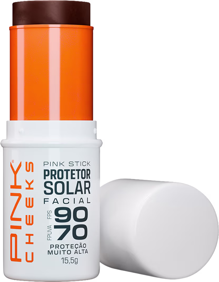 Protetor solar facial com cor em bastão. Pink Cheeks Pink Stick FPS 90 é prático e multifuncional, ideal para ser usado como um protetor solar diário e, especialmente, durante a prática de exercícios físicos ao ar livre, já que é resistente à água e ao suor.