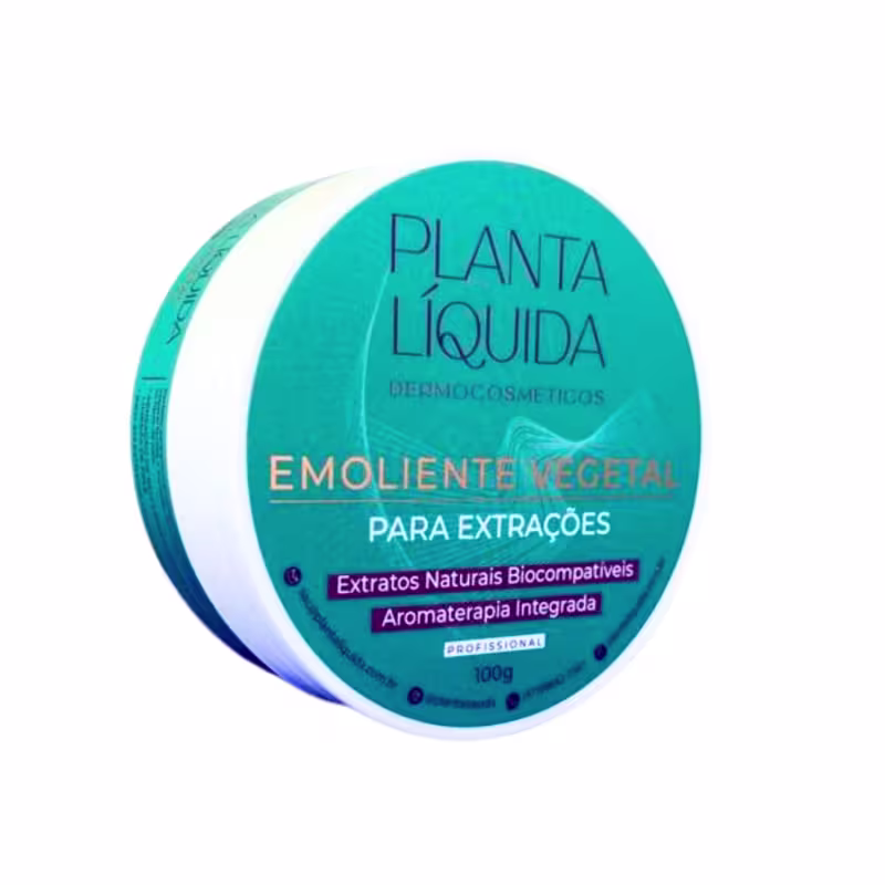 Emoliente vegetal para extrações. De uso profissional, Planta Líquida Emoliente Vegetal para Extração facilita a extração de cravos e espinhas, promovendo praticidade para o profissional e conforto para a pele.