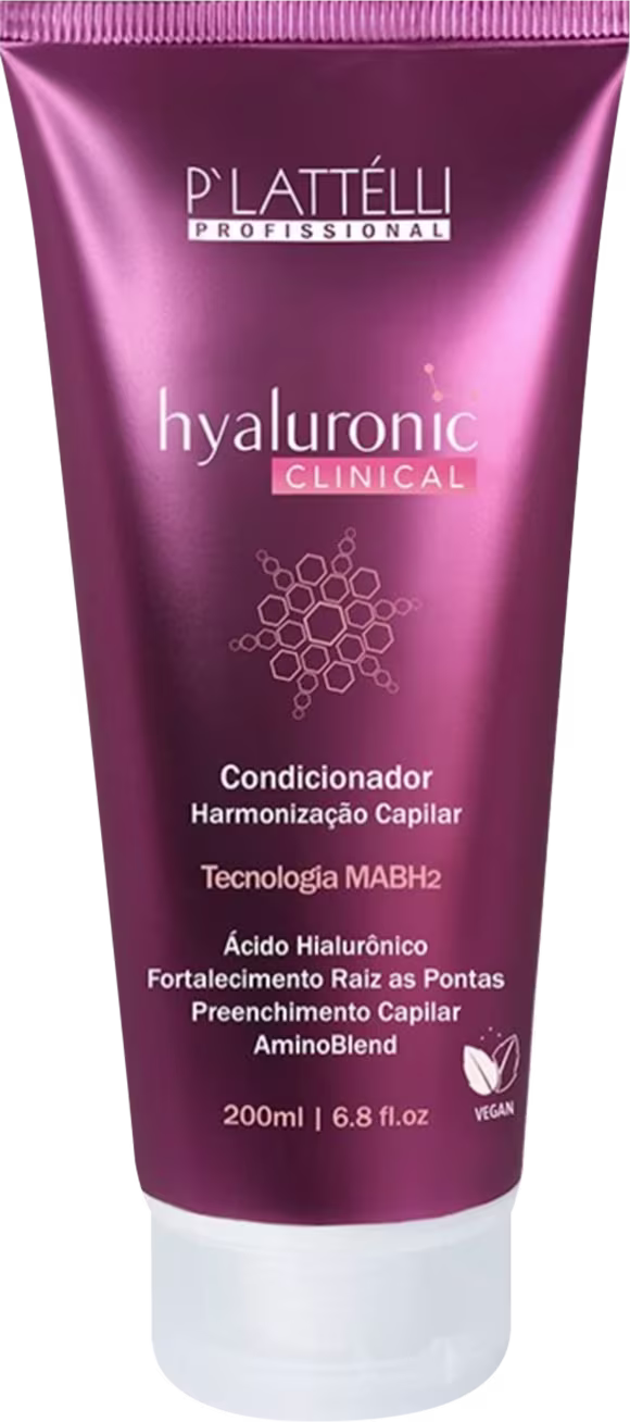 Condicionador. P'lattélli Profissional Hyaluronic Clinical proporciona uma harmonização capilar, prevenindo a quebra.