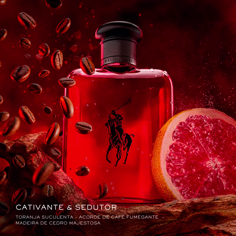 Polo Red é um perfume masculino cheio de energia e que inclui ingredientes que contemplam a cor vermelha. A sua combinação de notas olfativas evidencia uma personalidade forte e que gosta de riscos e desafios. Uma fragrância Amadeirada Especiada, Polo Red, de Ralph Lauren, exala uma sensação quente, assim como a cor vermelha. Grapefruit Rubi, Cranberry e Limão Siciliano., Açafrão Vermelho e Sálvia Vermelha, Café, Âmbar e Cedro Vermelho.