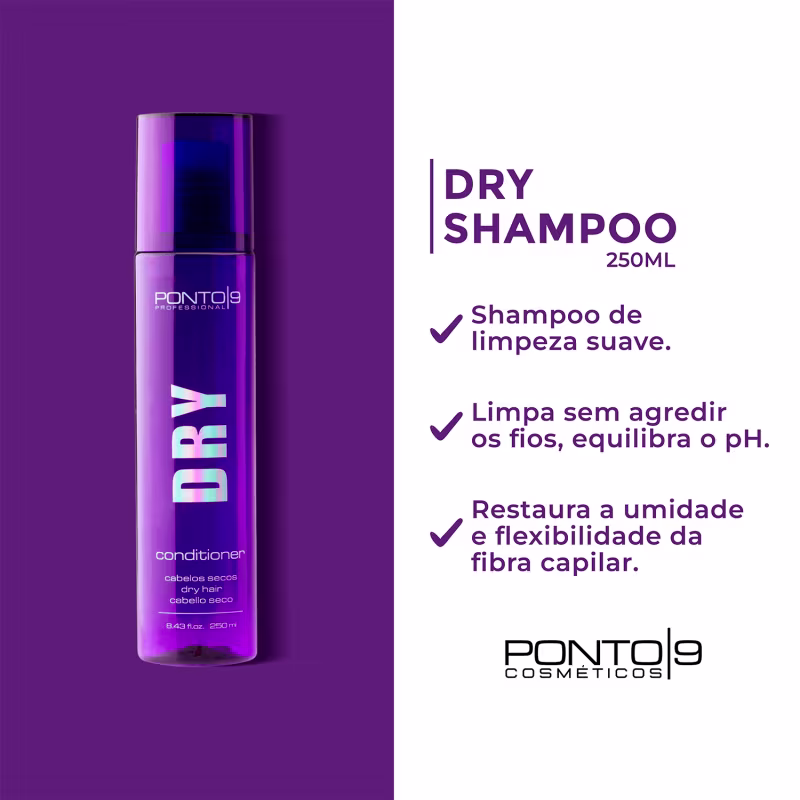Não sei o CEPShampoo para cabelos secos. Ponto 9 Dry limpa sem agredir, equilibra o pH e devolve toda sedosidade necessária ao cabelo.