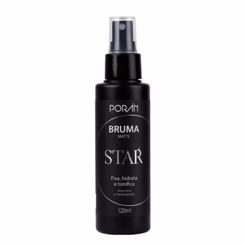 Bruma matte facial. Porán Star, ideal para usar tanto pré quanto pós maquiagem, pois hidrata a pele e ajuda a fixar.