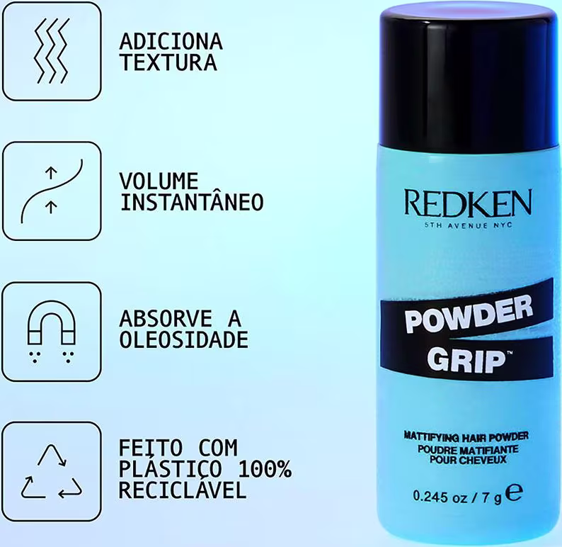 Pó capilar. Powder Grip Redken Styling com efeito matificante fornece textura e volume para penteados duradouros.