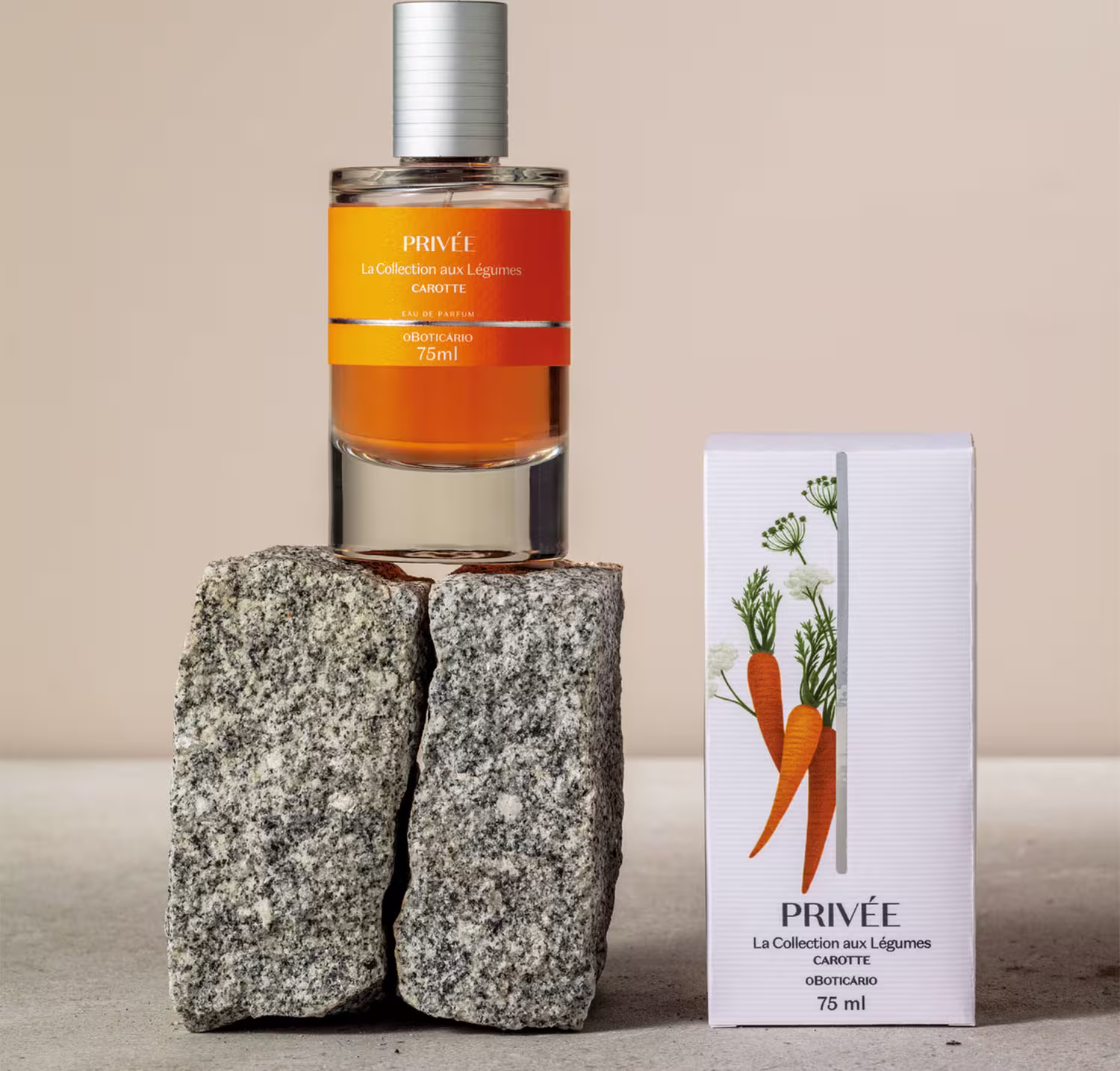 Privée O Boticário,, linha que traz as maiores tendências olfativas da perfumaria internacional, apresenta Privée La Collection Aux Légumes Carotte Eau De Parfum, criado com a sinestesia exótica do olfativo e o aspecto textural dos legumes em uma fragrância cítrica amadeirada com Carotte: a doçura da cenoura com notas cítricas e amadeiradas.