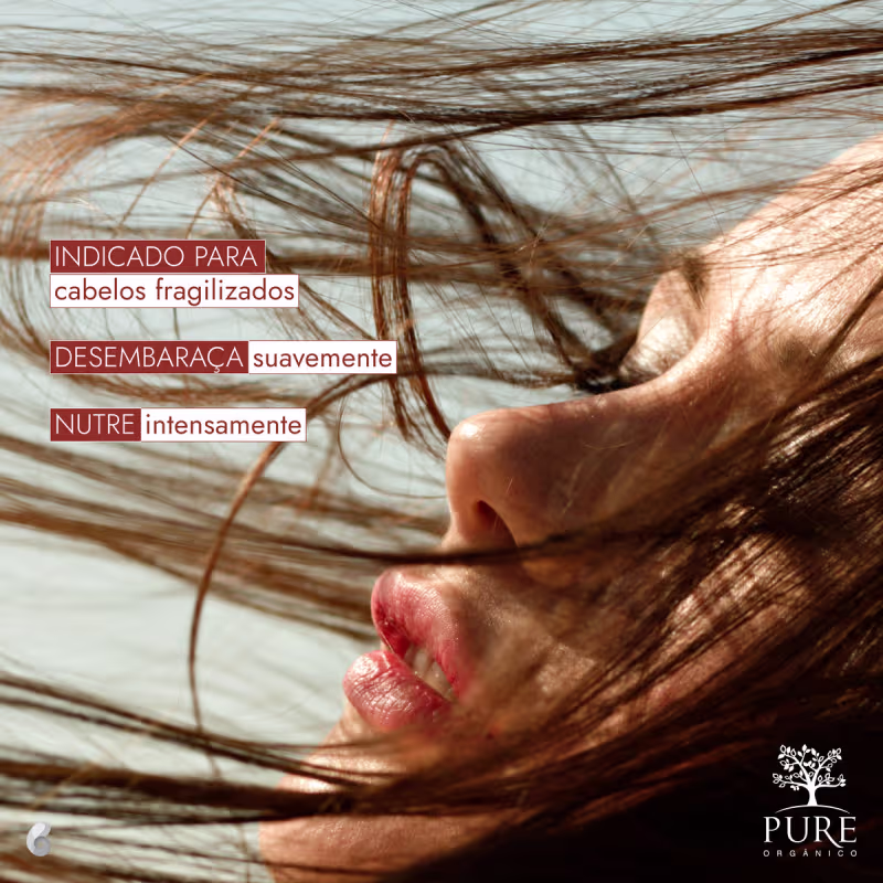 Condicionador para cabelos fragilizados. O Pure Orgânico Óleos Essenciais desembaraça suavemente e nutre intensamente a fibra capilar, além de selar a cutícula dos fios, evitando que eles percam água e mantenham a umidade natural. Seus cabelos ficarão protegidos das agressões externas do dia a dia.