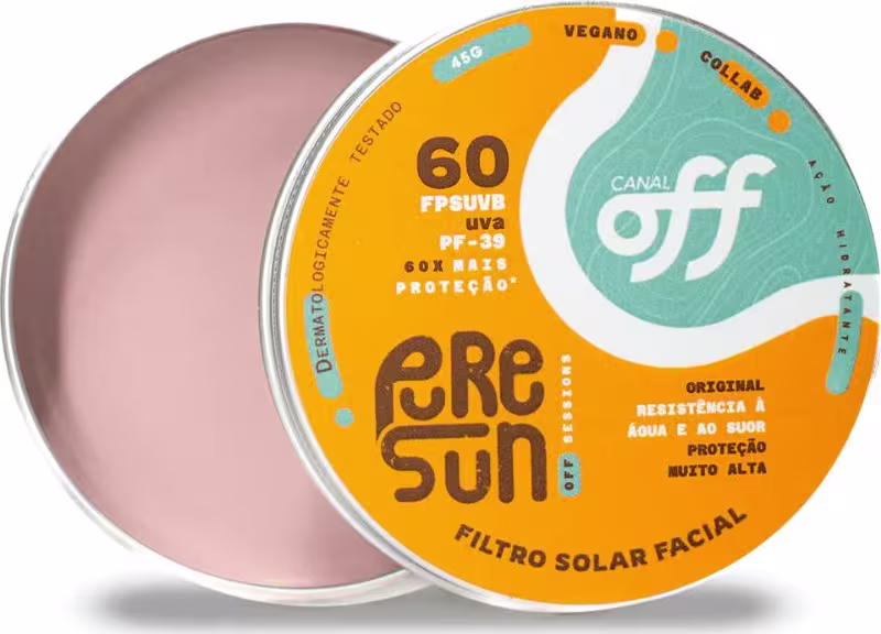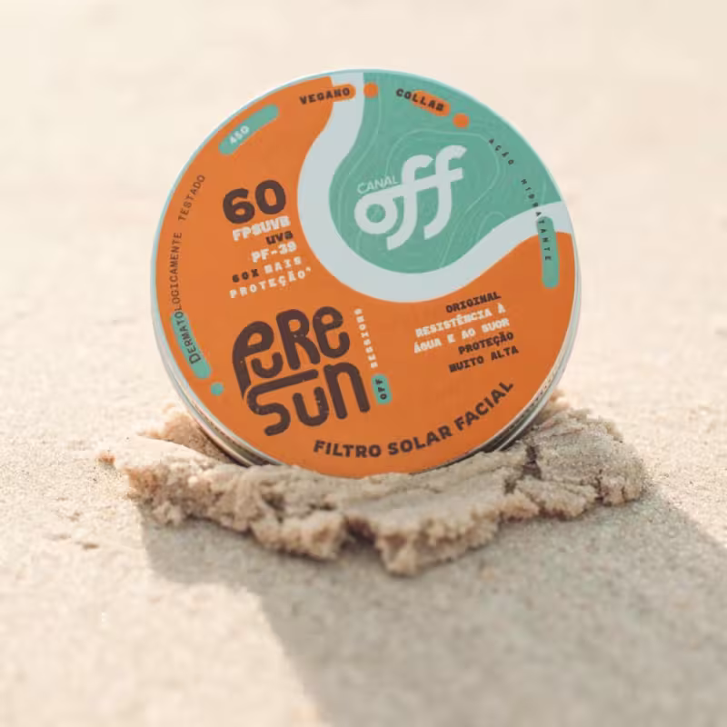 Protetor solar. PureSun Clássico + Canal OFF FPS60 tem alta resistência a água e ao suor, não escorre nos olhos, tem toque seco e hidrata.