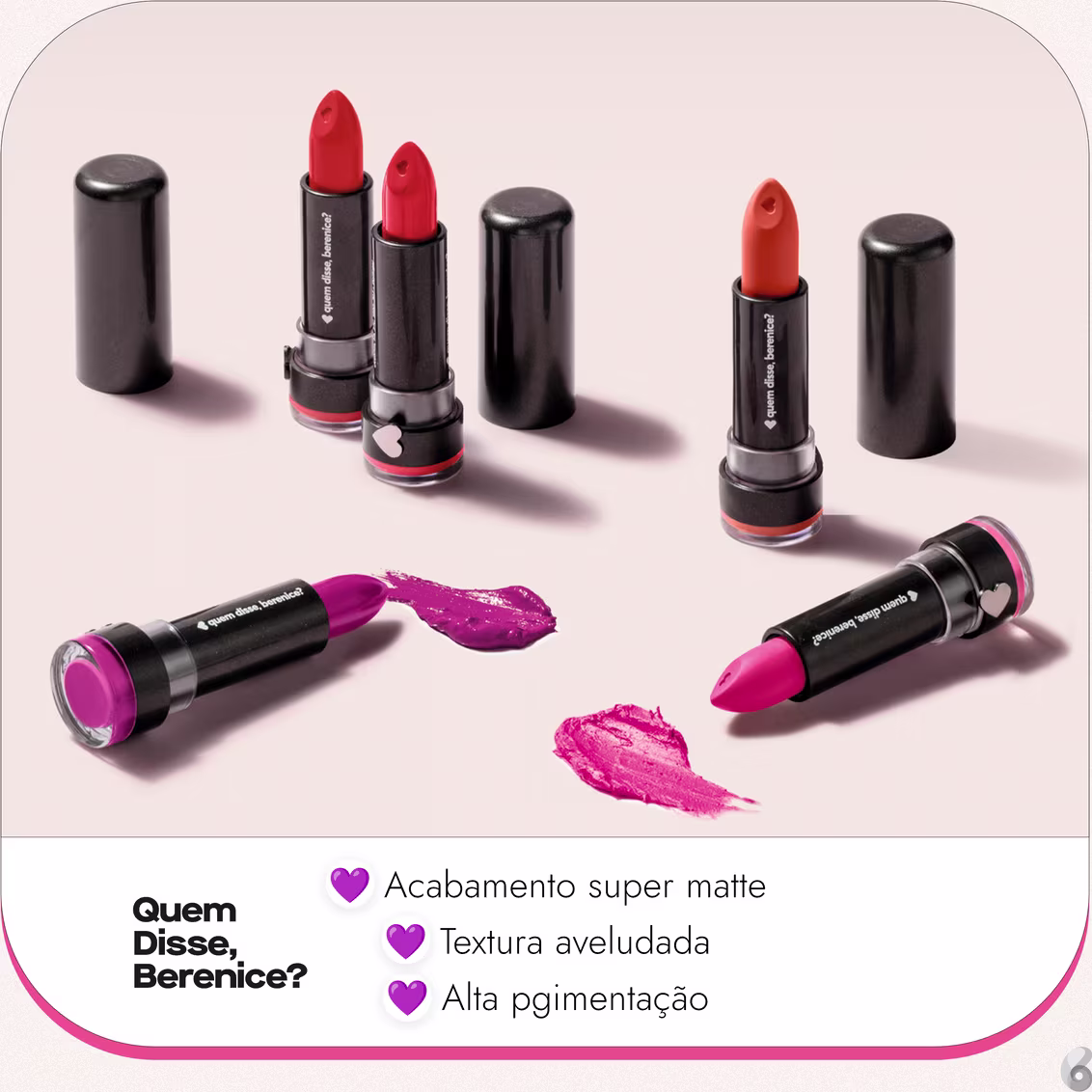 Batom Matte Quem Disse, Berenice? confere um acabamento super mate e FPS 20, além de uma cor super pigmentada. Melhores Batons de Quem Disse, Berenice? na BLZ. Ver mais ❯