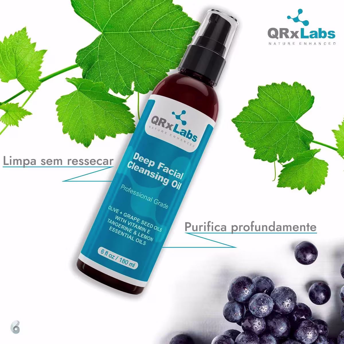 Óleo de limpeza profunda facial. QRxLabs Deep Facial Cleansing Oil purifica profundamente sem ressecar e com muita maciez. O primeiro passo para reconquistar uma pele com textura de bebê.