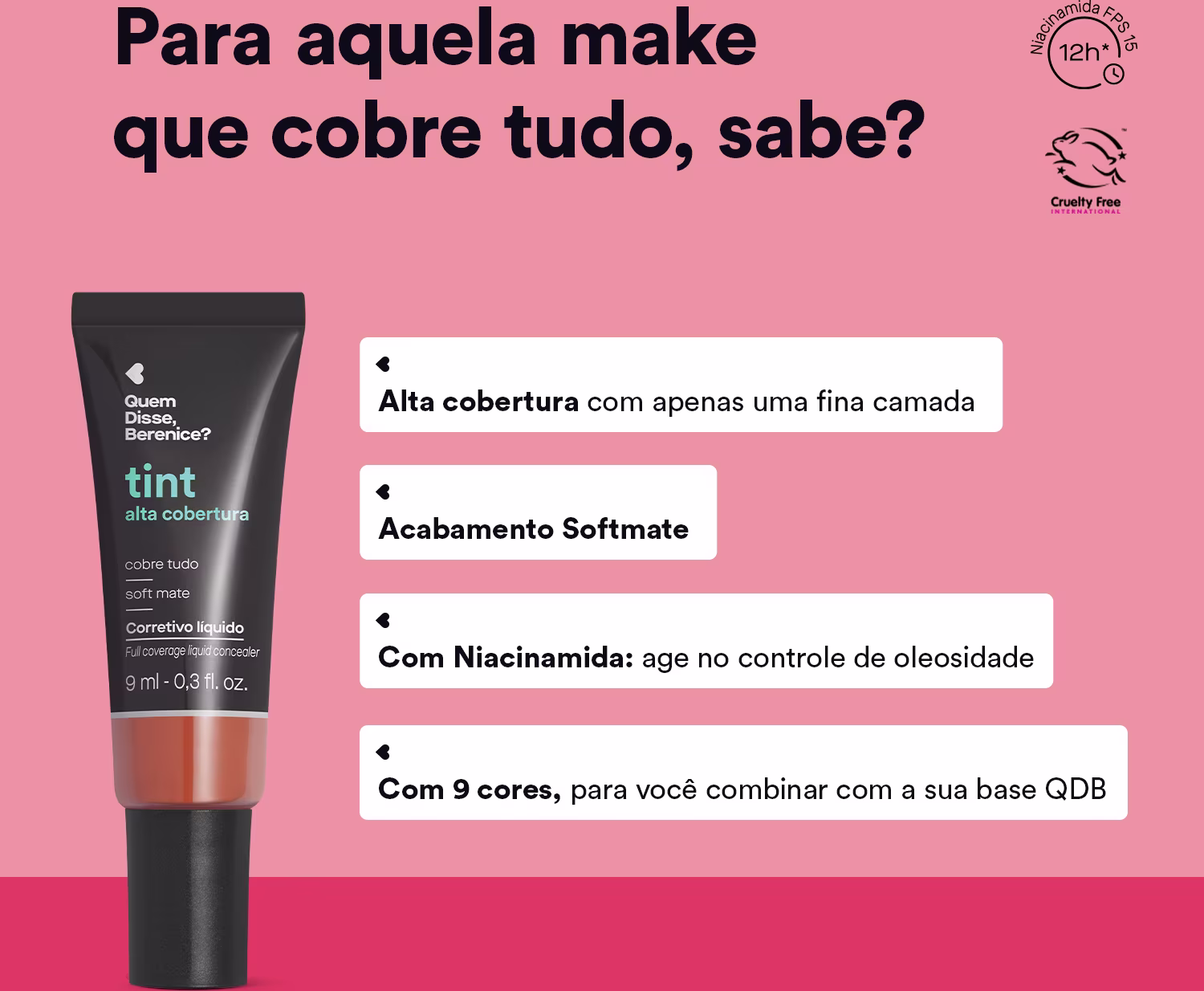 Corretivo Líquido Quem Disse, Berenice? Tint Alta Cobertura: cobre tudo com acabamento softmate que não craquela. Melhores Corretivos QDB na BLZ. Ver mais ❯