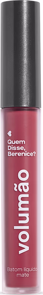 O Batom Líquido Quem Disse, Berenice? Volumão possui uma fórmula exclusiva que estimula a síntese de Colágeno, deixando a pele labial mais firme e com uma elasticidade melhor. Além disso, confere alta pigmentação já na primeira aplicação, cria um efeito mate impecável e proporciona uma sensação geladinha super confortável. Experimente e arrase na make!