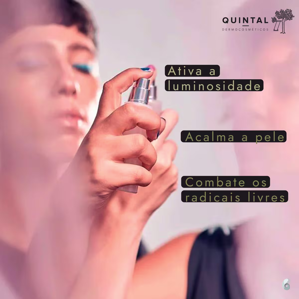 Bruma multifuncional para todos os tipos de pele. Quintal Restauradora Energizante ativa a luminosidade, acalma e combate os radicais livres.