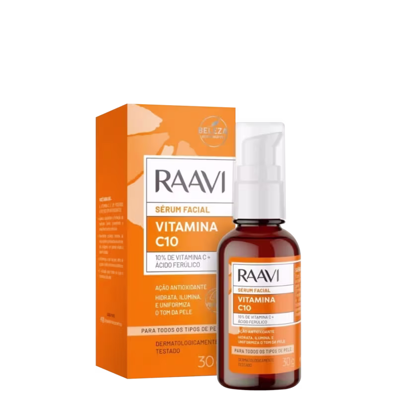 Não sei o CEPSérum facial. Raavi Vitamina C10 ajuda a uniformizar o tom da pele, garantindo uma aparência mais saudável para a tez.