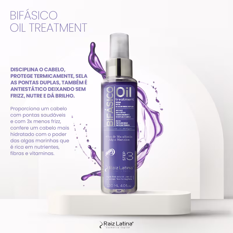 O Óleo Bifásico Raiz Latina é um finalizador ideal para sua rotina hair care se tornar ainda mais prática e versátil, com ativos óleo de macadâmia e algas marinhas, que entrega um cabelo mais hidratado e maleável.