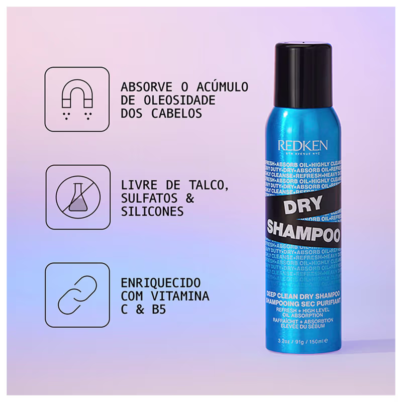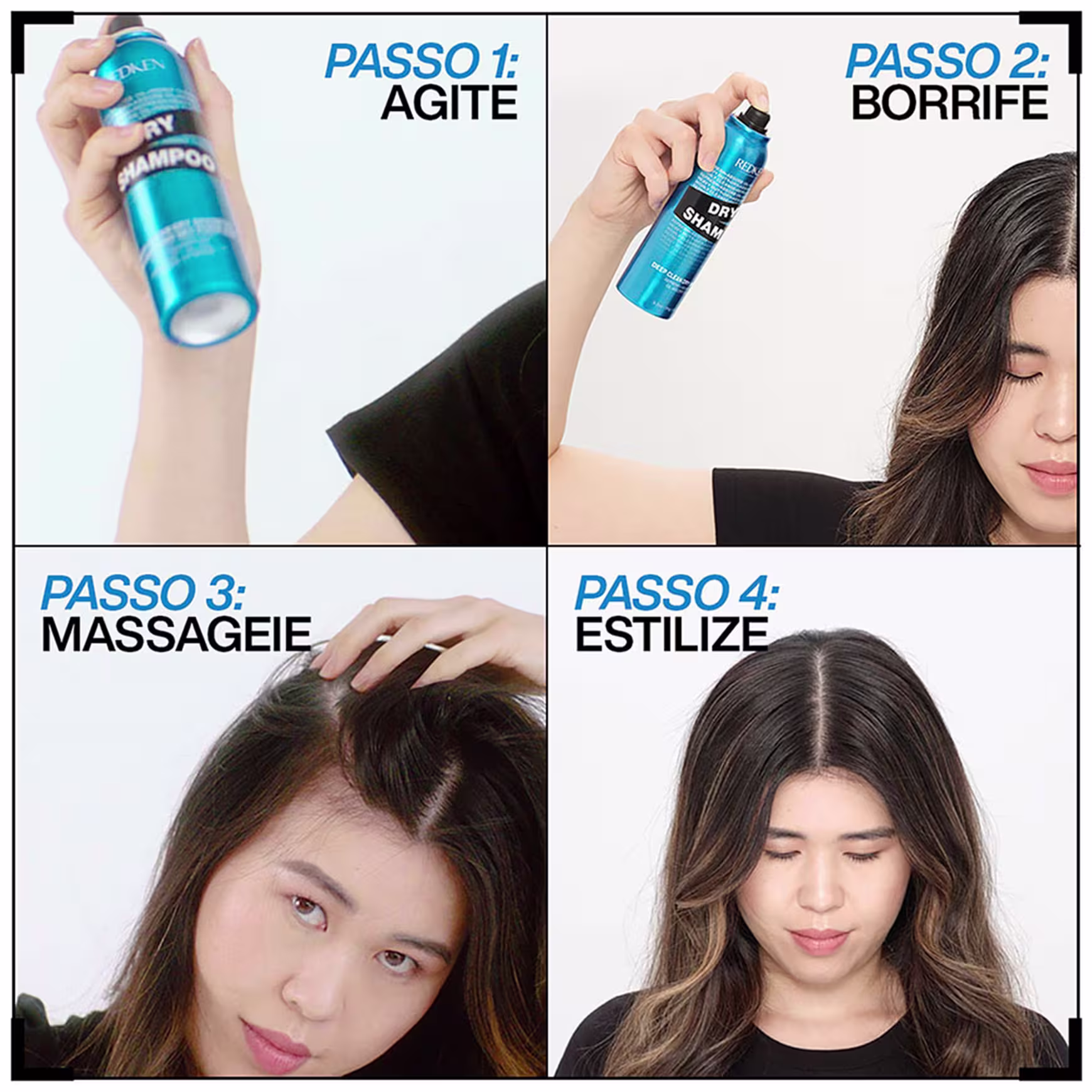 Shampoo a seco. Redken Dry é ideal para manter os fios limpos no intervalo entre as lavagens, podendo ser usado em até 4 dias após a limpeza.
