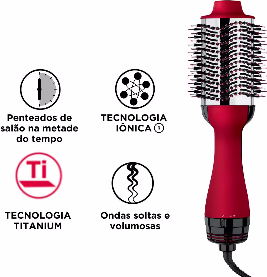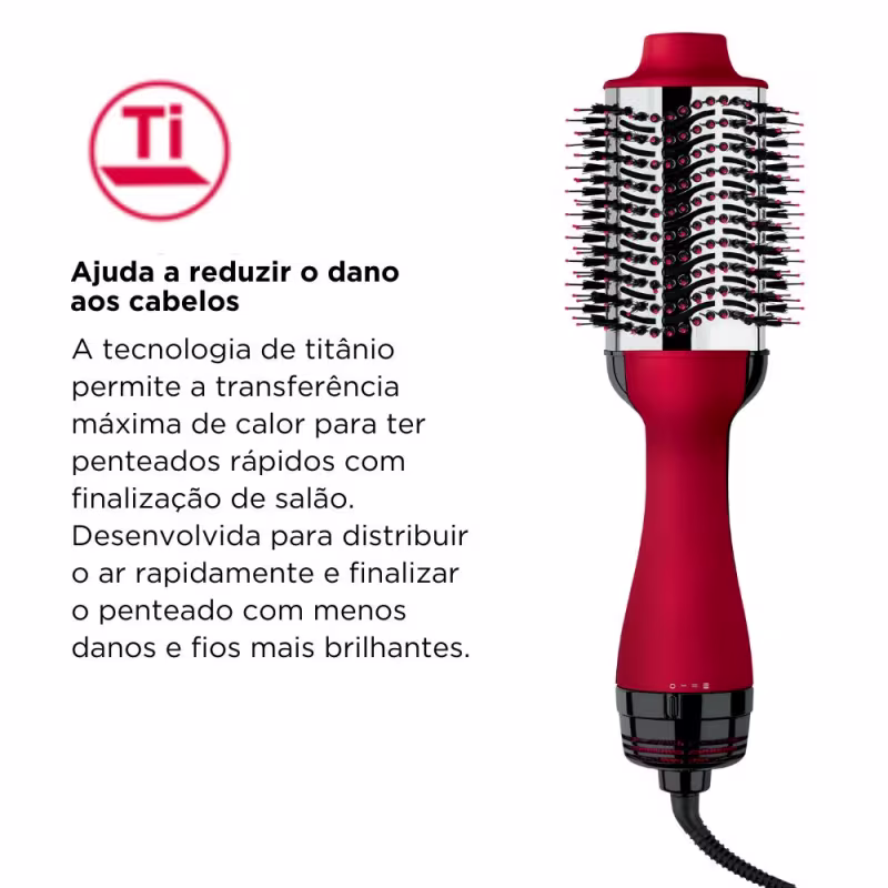 Escova secadora alisadora. Revlon Professional Titanium 1200W 127V tem a potência de um secador e a versatilidade de uma escova.