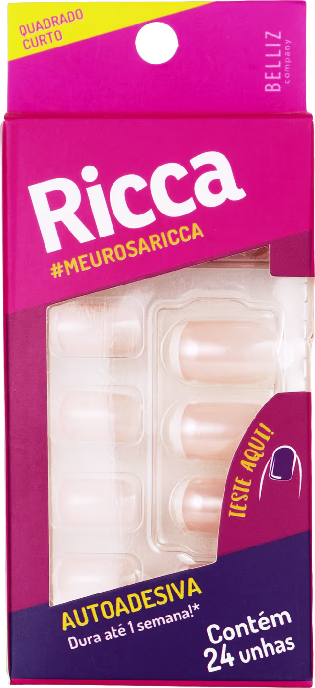 Unhas Postiças Ricca Quadrado Curto. Proporciona unhas em cores sofisticadas e acabamento incrível. Melhores Acessórios Ricca na BLZ Ver mais ❯