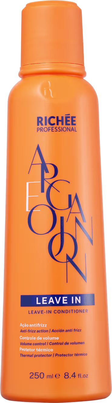 Leave-in para cabelo quimicamente tratado. Richée Professional Argan e Ojon Home Care controla o volume e reforça o efeito liso dos cabelos com escova progressiva ou que estejam ressecados e danificados.