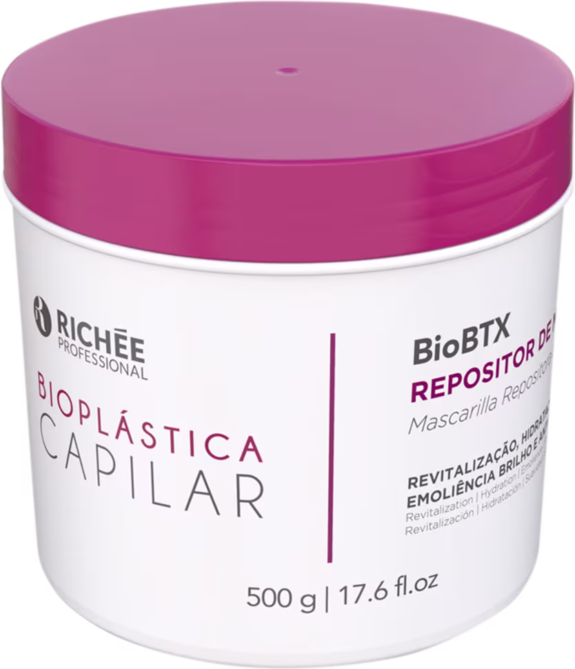 Repositor de massa para cabelos danificados. Richée Professional Bioplástica BioBTx ajuda a revitalizar os fios fragilizados, porosos e com frizz. É um tratamento que garante disciplina e redução de volume do cabelo.