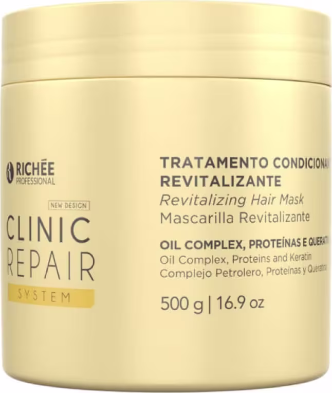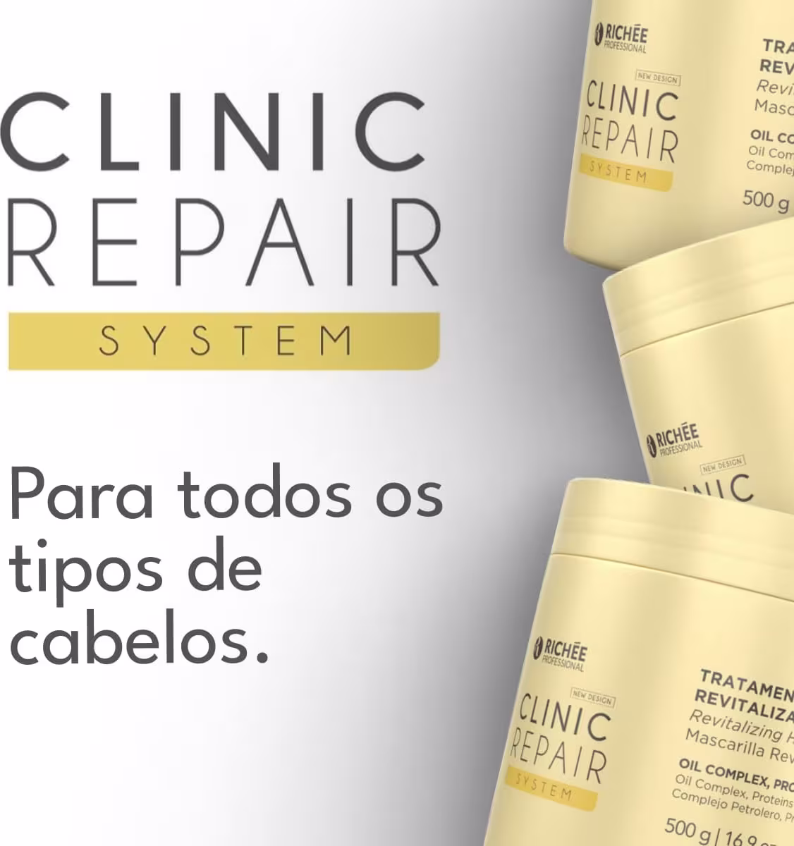 Máscara revitalizante para todos os tipos de cabelo. Richée Professional Clinic Repair System nutre e repara os danos por conta das agressões diárias e processos químicos com o fortalecimento e a revitalização da fibra.