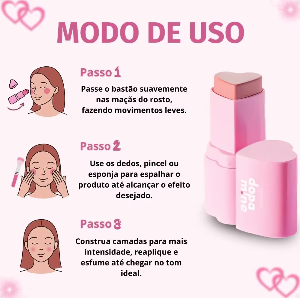 Blush em formato de bastão. Ruby Rose Dopamine oferece um toque de cor vibrante e natural à face para o dia a dia.