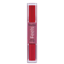 Batom líquido matte e metálico. Ruby Rose Feels Duo Lips possui um tipo diferente de textura em cada lado, as cores variam entre tons de nude, rosa e vermelho.