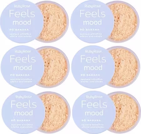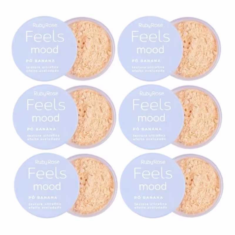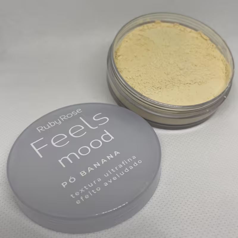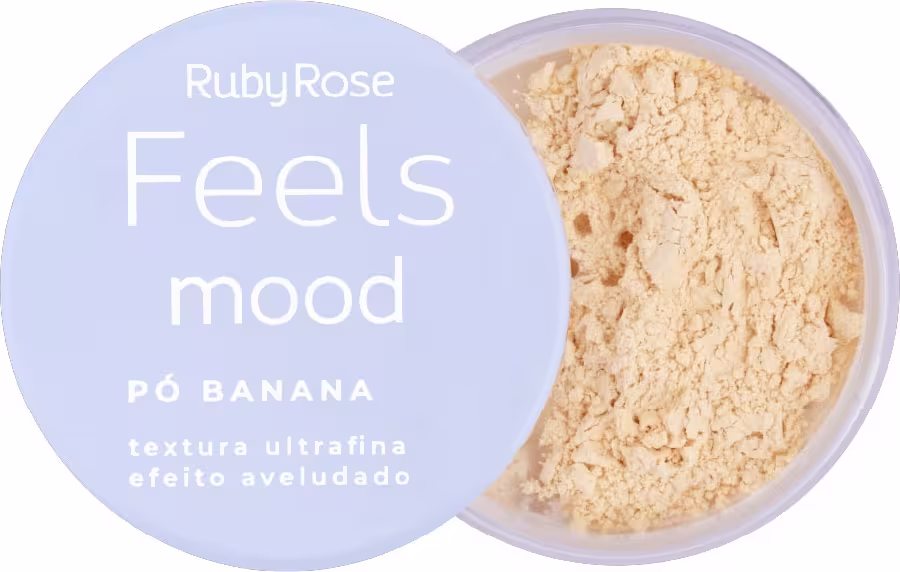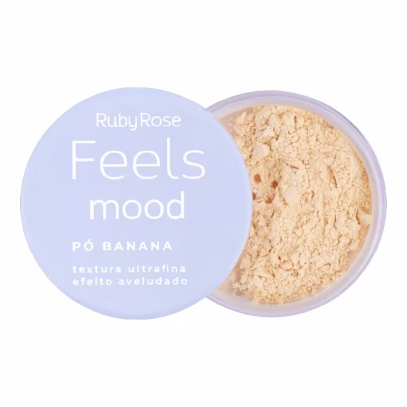 Pó solto banana. Ruby Rose Feels Mood possui textura ultra fina, ideal para selar a maquiagem deixando um efeito aveludado na pele.