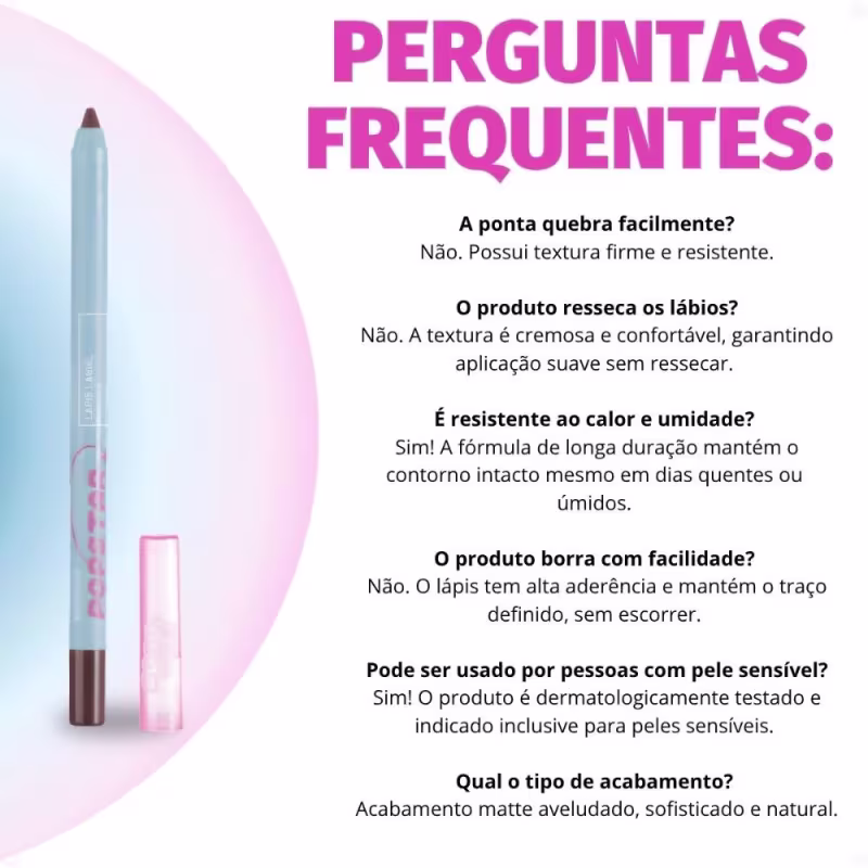 O Lápis Labial Ruby Rose Iconic Popstar permite desenhar o contorno dos lábios com precisão absoluta, funcionando como uma verdadeira moldura que expressa sua personalidade e atitude. Com uma textura extremamente macia e fórmula de alta pigmentação, ele desliza suavemente, garantindo um acabamento impecável, sofisticado e de longa duração.