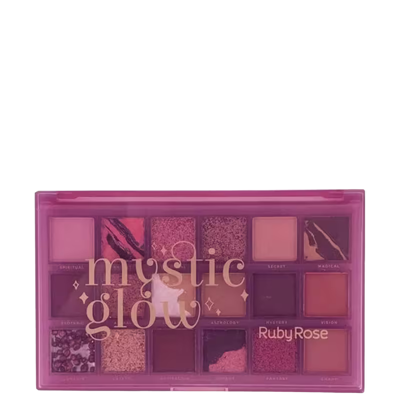 A Paleta de Sombras Ruby Rose Mystic Glow conta com 18 tons e texturas diferentes para você ousar no visual. Ideal para a sua rotina de beleza!