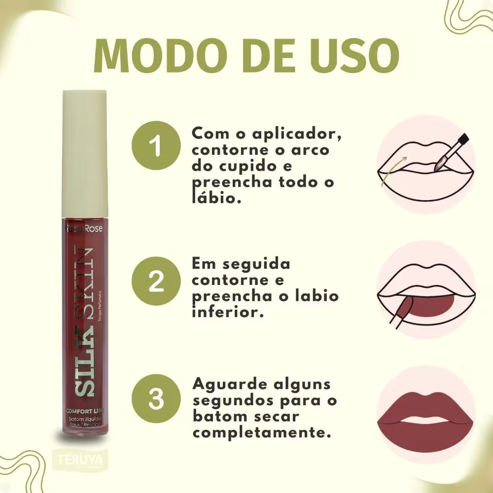 Não sei o CEPBatom líquido de alta pigmentação. Ruby Rose Silk Skin Comfort Lips conta com longa duração, conforto labial e cor vibrante.