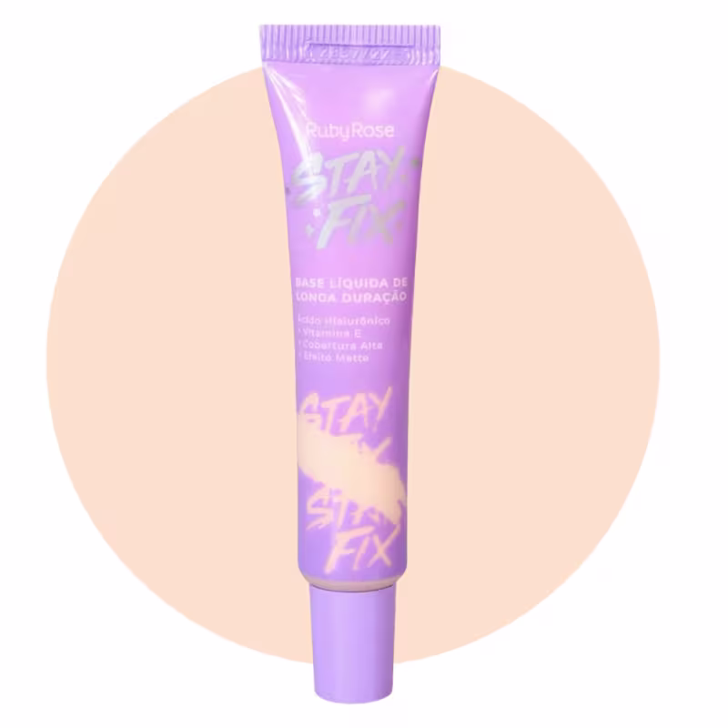Base líquida com efeito matte. Ruby Rose Stay Fix possui alta durabilidade, com cobertura completa e uniforme.