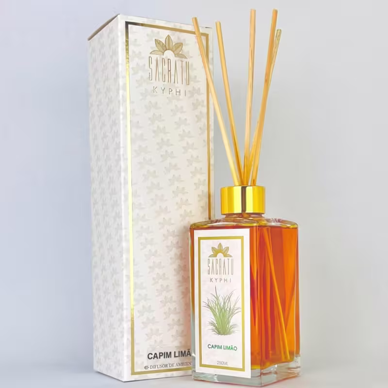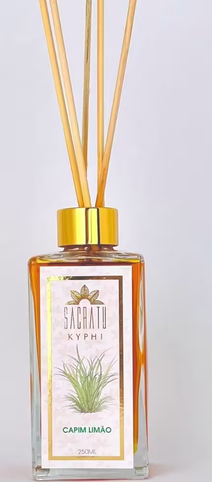 Difusor de aromas. Sacratu Kyphi Capim Limão, fragrância herbal misturada a notas mais cítricas que remetem ao frescor da natureza.
