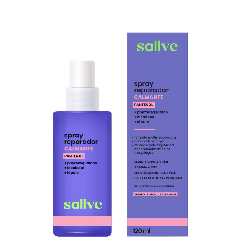 Não sei o CEPSpray corporal hidratante calmante para peles sensíveis ou sensibilizadas. Sallve Reparador Hidratante suaviza e repara.