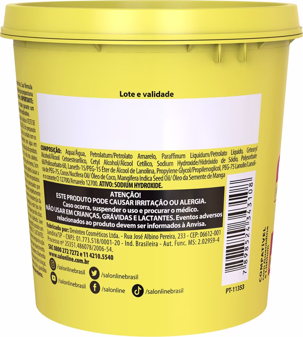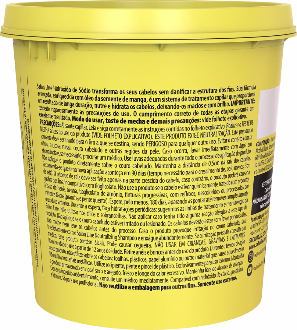 Creme alisante para todos os tipos de cabelo com textura média. Salon Line Hidróxido de Sódio Óleo Semente de Manga Regular Creme Alisante garante um efeito liso e hidratado, com fios soltos e sedosos.