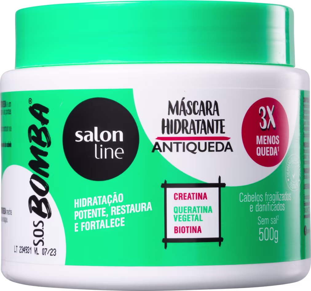 Máscara para cabelos fragilizados e danificados. Salon Line S.O.S Bomba Antiqueda Máscara restaura e fortalece a fibra capilar para fios mais resistentes.