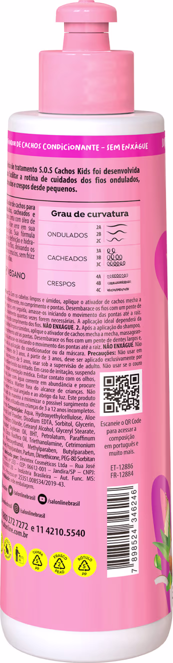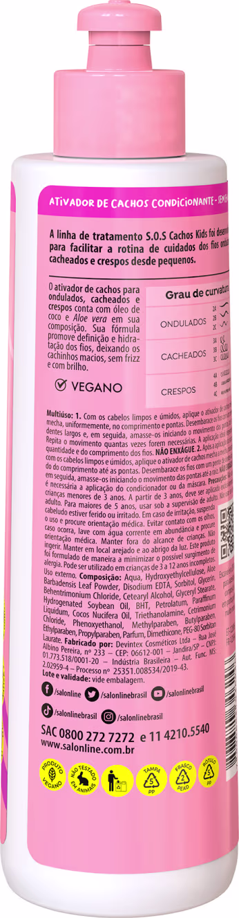 Ativador de Cachos Salon Line S.O.S Cachos Kids controla o volume, o frizz e proporciona brilho. Os cachos ganham maciez, hidratação e ainda ficam cheios de movimento e maleabilidade.