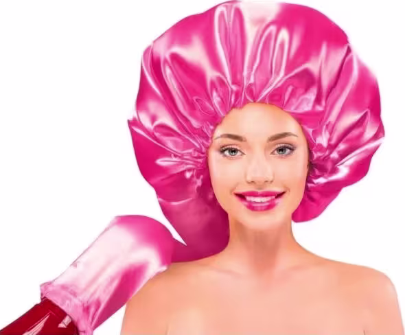 Touca de cetim difusora. Santa Clara seca os cabelos com praticidade e rapidez, garantindo finalização deslumbrante.