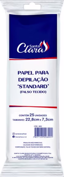 O Papel para Depilação Santa Clara Standard Falso Tecido é hipoalergênico e extremamente higiênico, já que a cera utilizada não pode ser reaproveitada. São 25 unidades com tamanho de 22,8cm x 7,3cm.